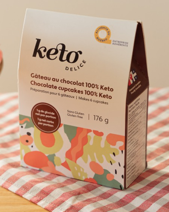 Ingrédients: pâte de cacao, farine d’amande, érythritol pur, farine de lin, poudre à pâte.